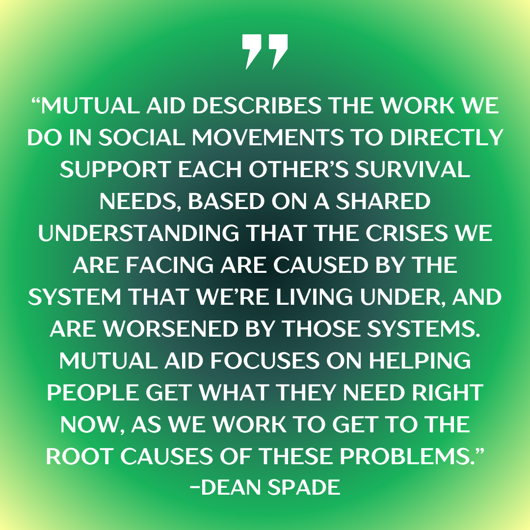 A term we’ve been discussing at the WCC for a while has been used even more frequently in the past few weeks: mutual aid. Dean Spade, a professor at the Seattle University School of Law and the founder of the Sylvia Rivera Law Project, says, “Mutual aid describes the work we do in social movements to directly support each other’s survival needs, based on a shared understanding that the crises we are facing are caused by the system that we’re living under, and are worsened by those systems. Mutual aid focuses on helping people get what they need right now, as we work to get to the root causes of these problems.”