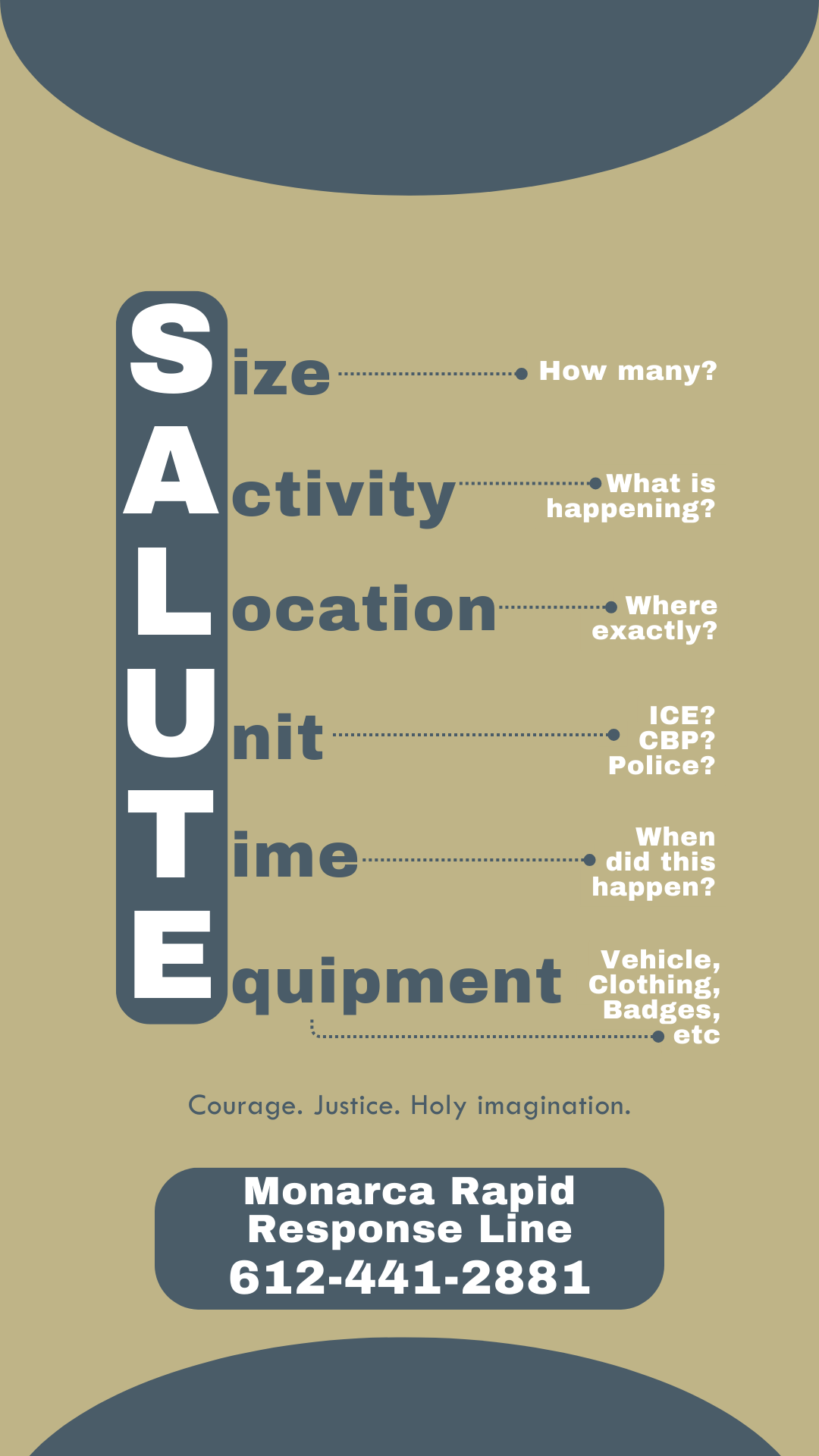 S.A.L.U.T.E. is a tool that has been used by legal observers and those monitoring ICE activities in their communities to effectively communicate what is happening. Communicating details about enforcement operations helps groups running hotlines better understand and share relevant information with those who need to be informed.